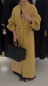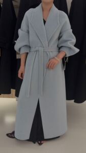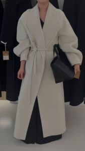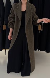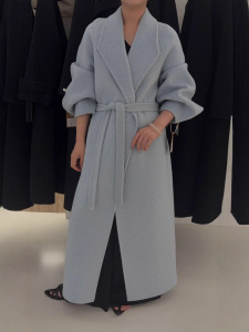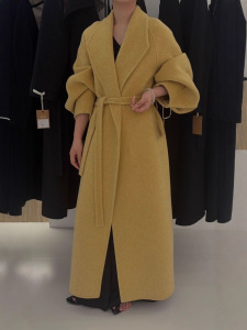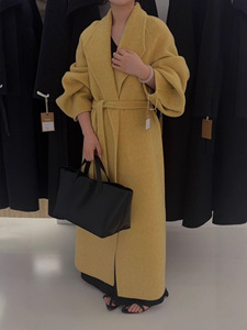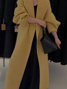 韩国秋冬季新品绑带翻领加长款系腰带宽松双面呢羊毛大衣女外套