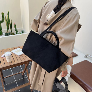 韩版大容量绒布面大包手提托特包包女2025高级感通勤时尚单肩包包