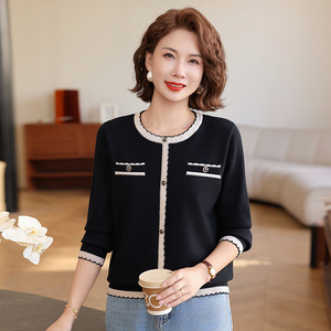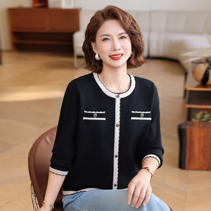 秋冬新款妈妈小香风针织毛衣针织衫气质洋气显瘦减龄长袖打底上衣