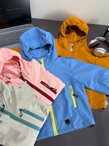 中大童薄款外套秋季风衣连帽上衣撞色多巴胺拉链冲锋衣