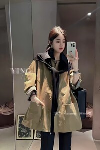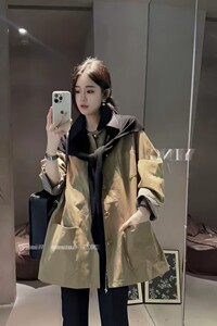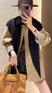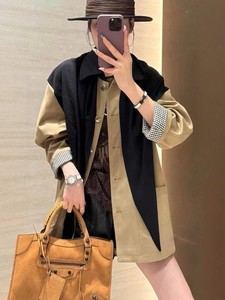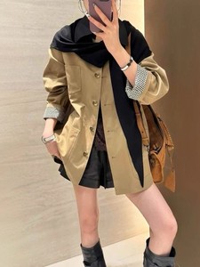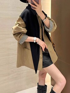25秋季新款设计感针织披肩➕棉混纺撞色风衣外套146