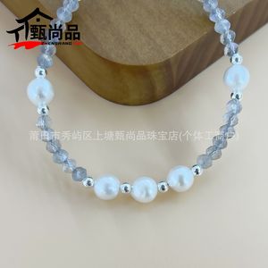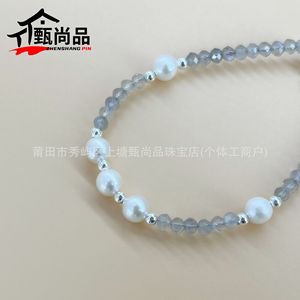 灰色月光石珍珠手串手工编织绳女款优雅单圈手链可延长白月光饰品
