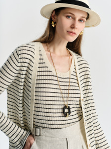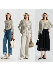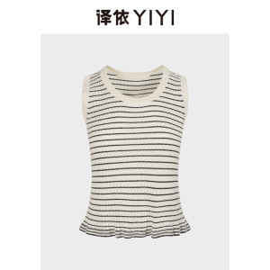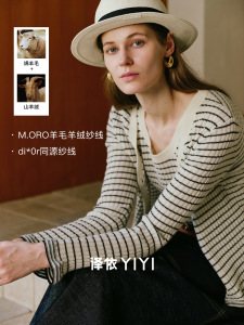 译依YIYI 星光缕缕 羊毛羊绒条纹小珠片荷叶边修身针织开衫&背心