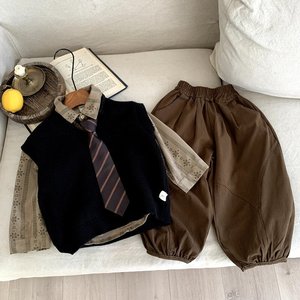 男童套装秋装2025新款春秋宝宝针织马甲韩版帅气儿童休闲三件套潮