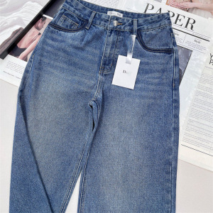 25秋季新款南油高定dio简约休闲中高腰压花字母直筒牛仔裤