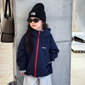 【四级强防水】儿童休闲韩版耐磨宽松户外防风撞色连帽冲锋衣外套