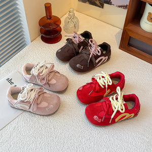 女童丑萌泡芙鞋软底德训鞋2025早秋季爆款红色运动鞋百搭休闲板鞋