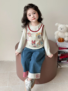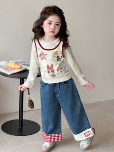 女童秋季卡通牛仔裤两件套2025新款洋气儿童校园直筒裤套装童装潮