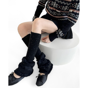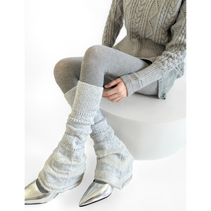 秋冬羊毛针织微闪拼接堆堆中筒袜套叠穿保暖毛感腿套ins韩系靴套