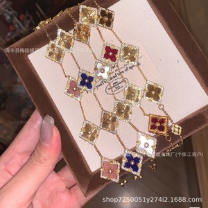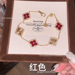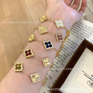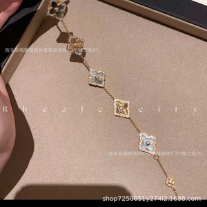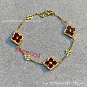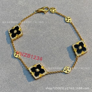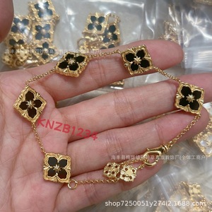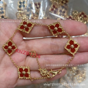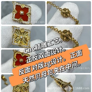 V金高版本CNC布契拉缇手链四叶草五花镶钻单花双面宫廷风手饰批发