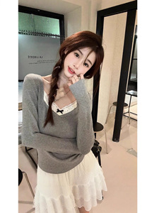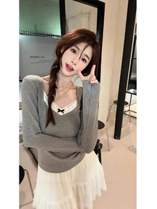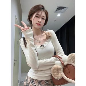 螺纹德绒长袖T恤女秋冬夏季修身加厚打底衫蝴蝶结保暖上衣外穿ins