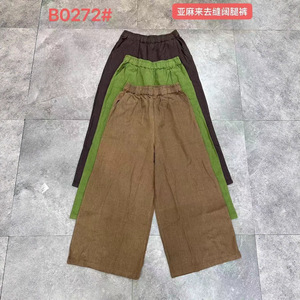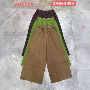 2025秋季新品复古亚麻裤显瘦来去缝麻裤阔腿裤宽松裤子