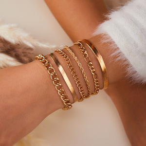 欧美新款气质潮流几何手链女 时尚复古小众金属刀片链条手链6条装