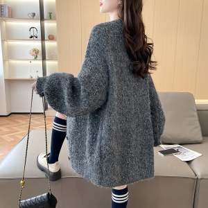 2025秋季毛衣琉萤漫闪时尚复古重工法式刺绣亮片V领女装针织开衫