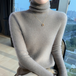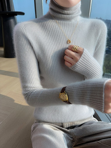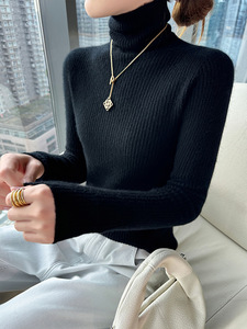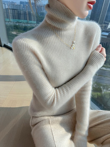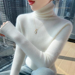 毛衣显瘦抽条厚款秋冬新款高翻领100羊毛女修身百搭针织打底套头