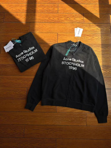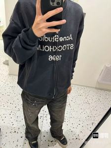 高品质AC水洗做旧字母1996印花外套下摆割裂拉链卫衣夹克外套男女