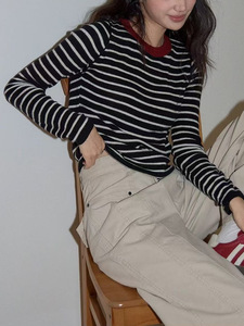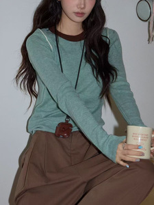 吵吵J 复古绿色圆领针织衫女2025秋新款高级气质修身显瘦长袖上衣