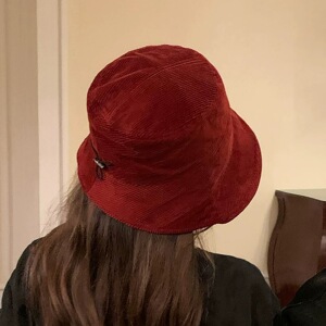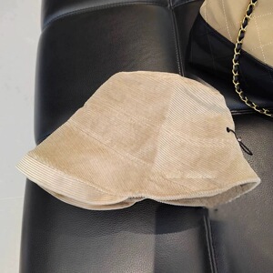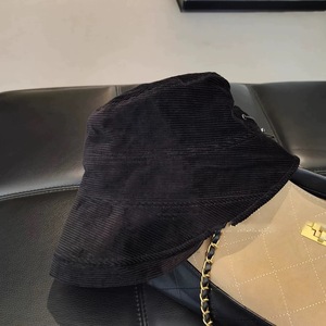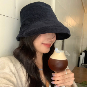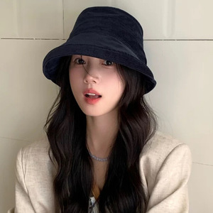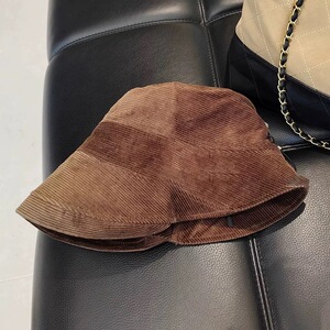 日系大帽檐卷边好质感灯芯绒渔夫帽子束口抽绳显脸小遮脸保暖盆帽