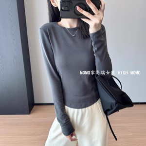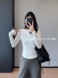 GU951瘦腰tee!拼接鱼骨线设计感修身显瘦长袖内搭T恤上衣女打底