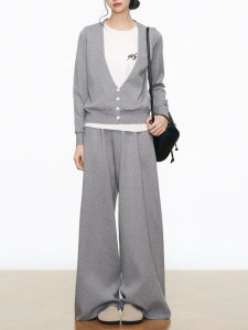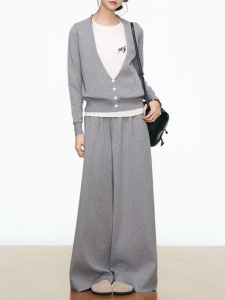 灰色针织长裤8632