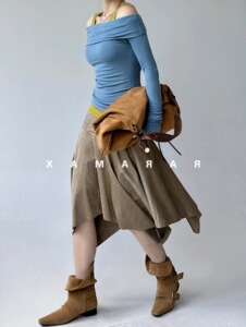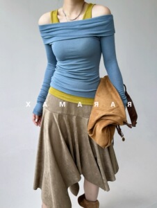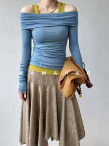 澳洲莱赛尔天丝羊毛~撞色假两件露肩多穿T恤打底~可机洗