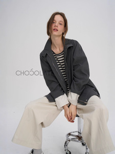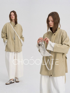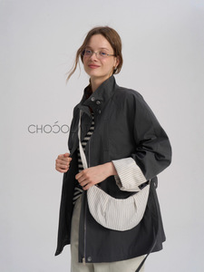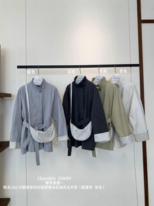2025早秋新款巴恩风袖子条纹撞色带包包大码休闲外套上衣