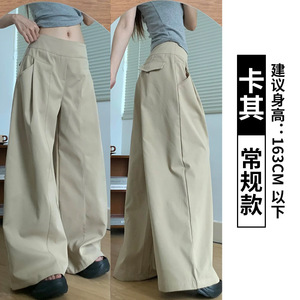 卡其色西装裤女夏薄款2025新款高腰垂感休闲直筒裤宽松显瘦阔腿裤