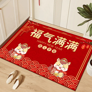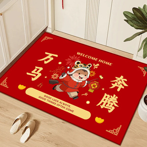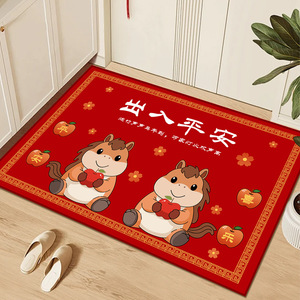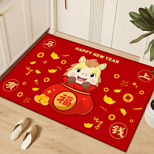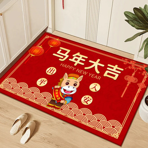 入户地垫马年红色喜庆易打理水晶绒地垫玄关门口耐磨柔软防滑垫