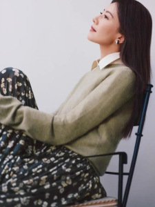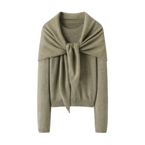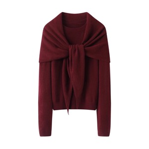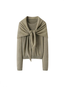 高圆圆同款ed女装2025秋季新款配三角巾两件套圆领针织衫女毛衣