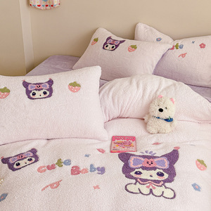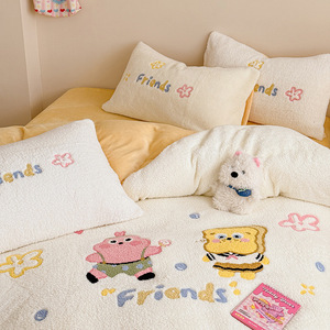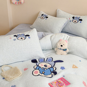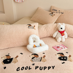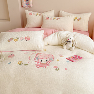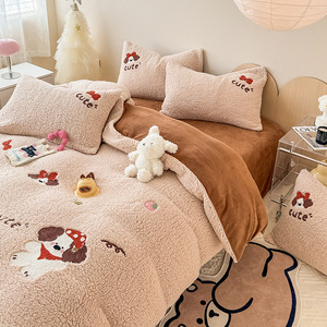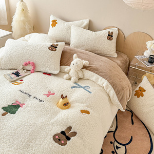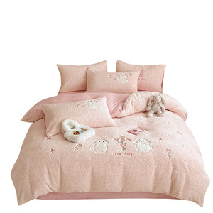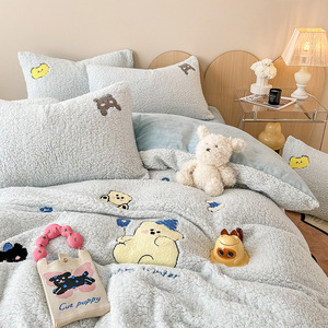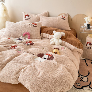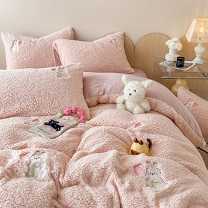 秋冬新款A类羊羔绒刺绣四件套加厚牛奶绒床单被套床上四件套