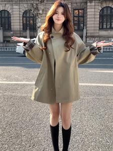 韩系卡其色立领风衣外套女2025春秋新款百搭宽松中长款小个子大衣
