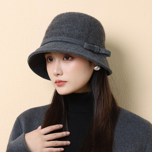 中老年人秋冬季妈妈优雅毛呢渔夫帽子女复古蝴蝶结高级感保暖盆帽