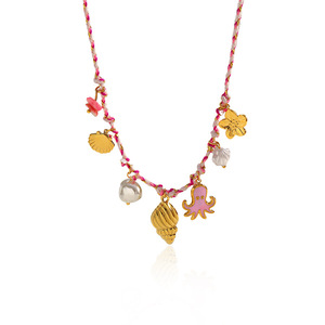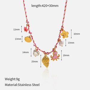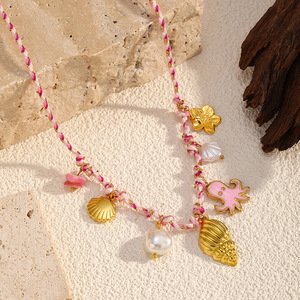 欧美跨境时尚海洋风贝壳多巴胺海星项链彩绳不锈钢贝壳吊坠女项链