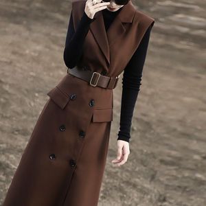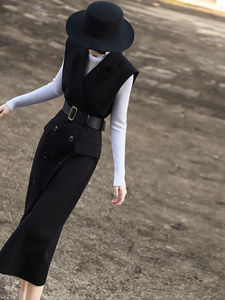 新品法式感2025秋季新款气质通勤双排扣无袖西装马甲连衣裙女