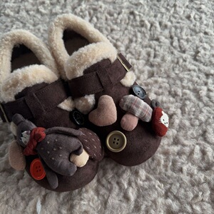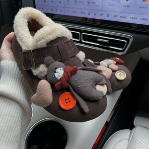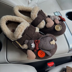 可爱卡通小熊~全包勃肯鞋女冬内增高爆款毛毛鞋厚底复古保暖棉鞋
