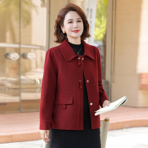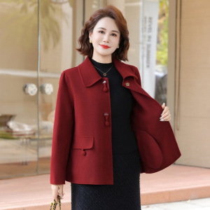 新中式妈妈秋装双面呢大衣女中年春秋外套中老年女装呢子短款毛呢