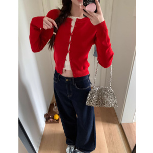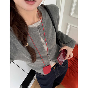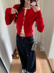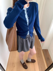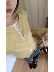 im向 氧气多巴胺 撞色假两件针织衫上衣女羊毛混纺圆领套头毛线衣