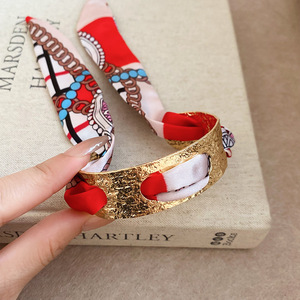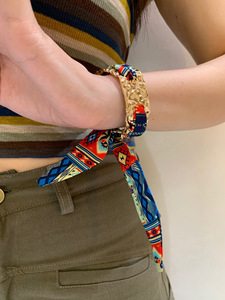 复古褶皱布艺丝巾缠绕开口手镯民族风时尚气质手环轻奢高级感手饰