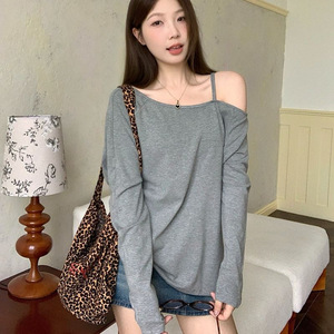 慵懒风秋季大码新款法式纯欲上衣女装设计感别致甜辣长袖上衣T恤