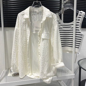 2025年秋季新款休闲钩花镂空衬衣设计感小众女装显瘦白色衬衫上衣