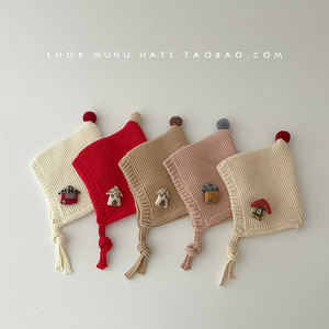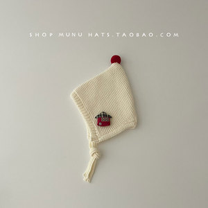 宝宝帽子冬天毛线帽韩版洋气尖顶加厚保暖护耳帽婴幼儿防风针织帽