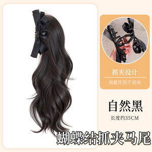 蝴蝶结抓夹卷马尾【自然黑】