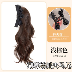 蝴蝶结抓夹卷马尾【浅棕色】
