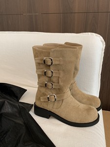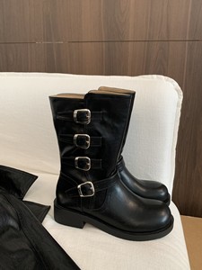2025年秋季韩版皮带扣长筒马丁靴女英伦风复古百搭厚底骑士靴