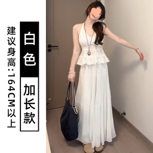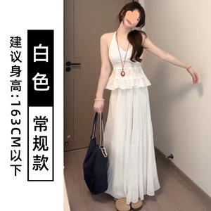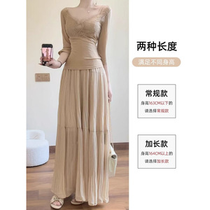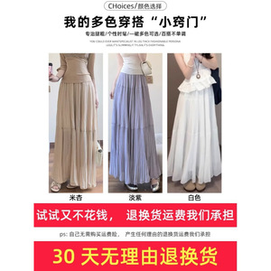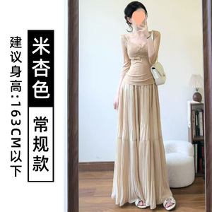 杏色雪纺半身裙女夏季新款高腰a字蓬蓬蛋糕裙设计感压褶仙女长裙