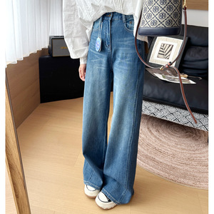 长腿时髦精 !猫须双线条牛仔裤女 2025早秋显瘦辣妹微喇叭阔腿裤