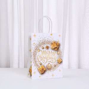 跨境圣诞节烫金手提牛皮纸袋 白金圣诞麋鹿礼品袋 派对糖果包装袋