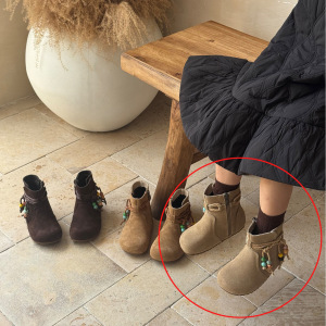 复古挂件真皮磨砂童鞋小童秋冬季儿童马丁靴女童靴子女孩宝宝短靴