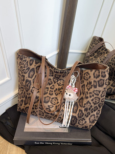 跨境2025新款豹纹托特包高级感大容量包包女复古单肩包手提通勤包