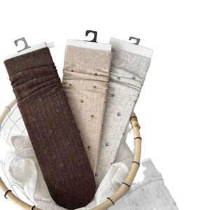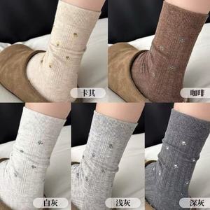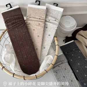 袜子女秋冬新款棉袜日系复古碎花无骨堆堆袜日常百搭ins 风中筒袜